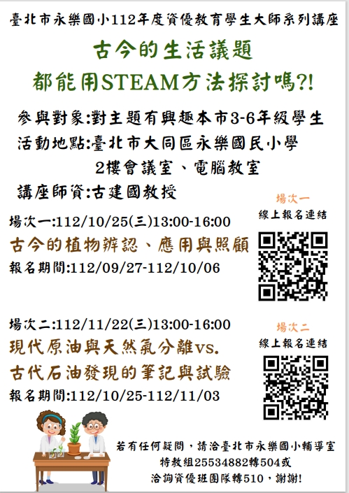 (三)講座地點:臺北市大同區永樂國民小學 2樓研習教室和電腦教室。