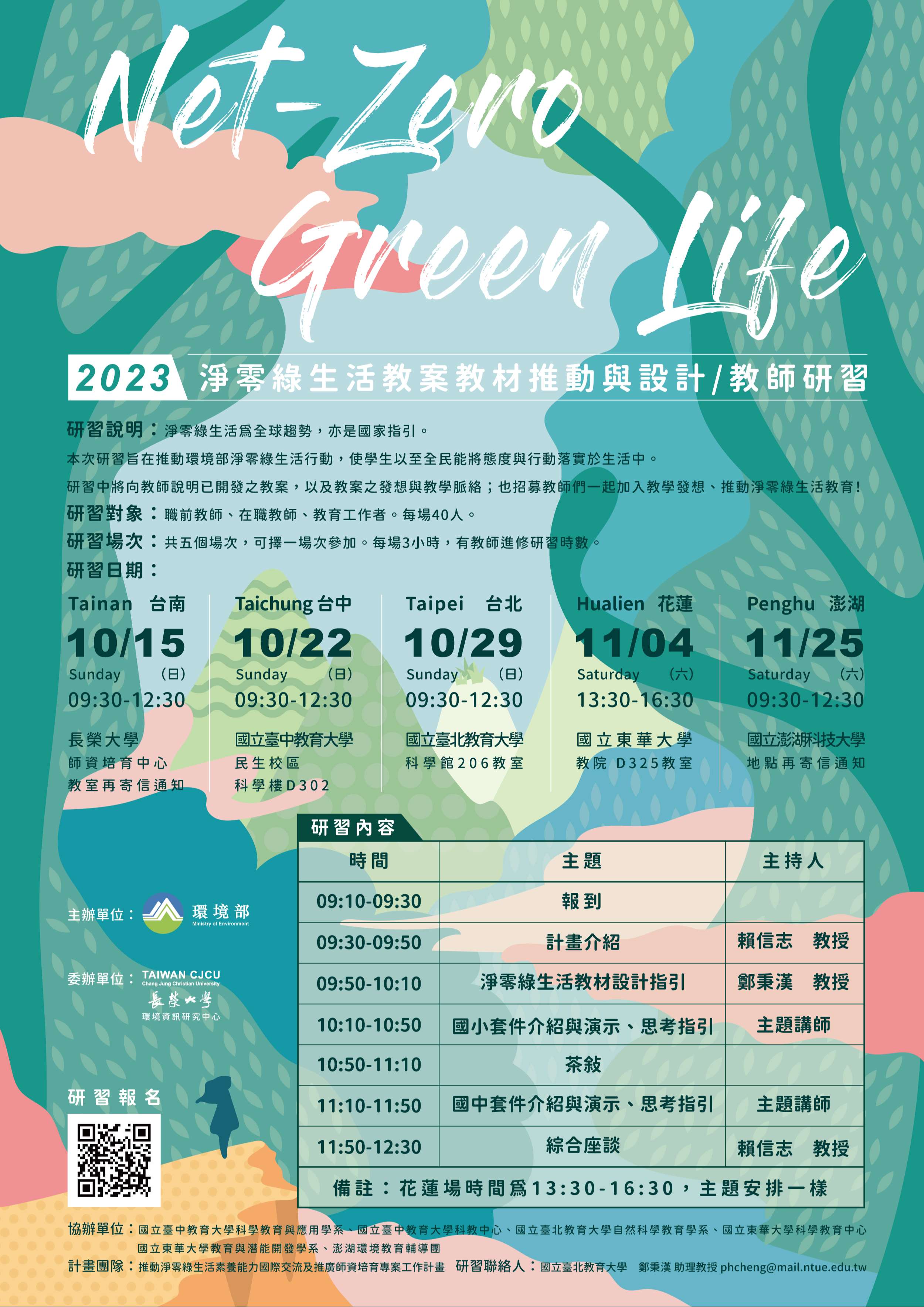 研習中將向教師說明已開發之教案,及教案之發想與教學 脈絡;並招募教師加入教學發想,推動淨零綠生活教育。