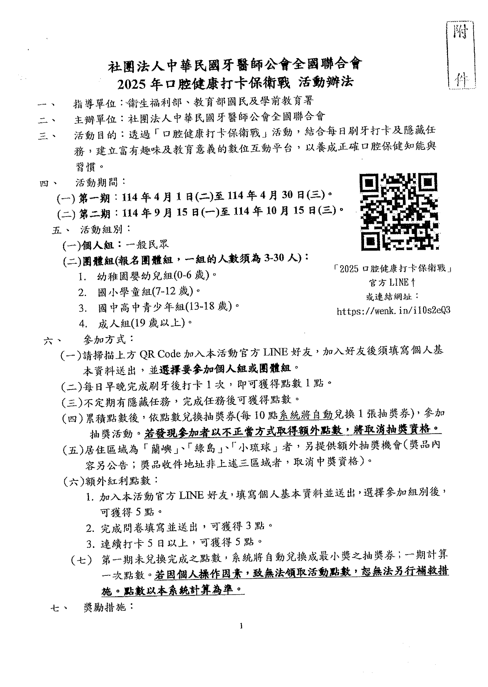 三、活動辦法請至牙醫全聯會網站:http://www.cda.org.tw/口腔衛生/口腔衛生活動
