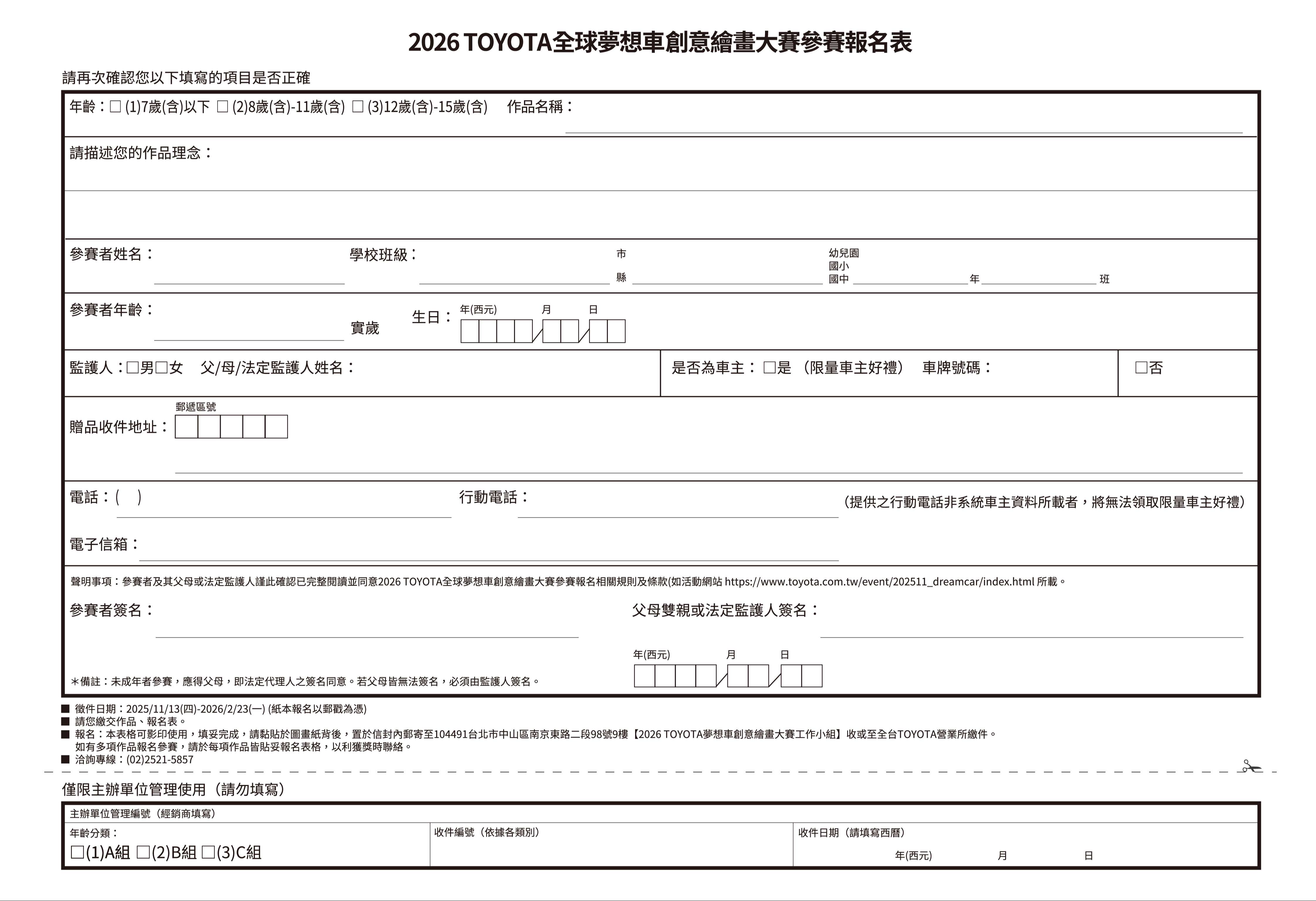 有興趣者可自行報名https://www.toyota.com.tw/event/202511_dreamcar/https://www.toyota.com.tw/event/202511_dreamcar/。
