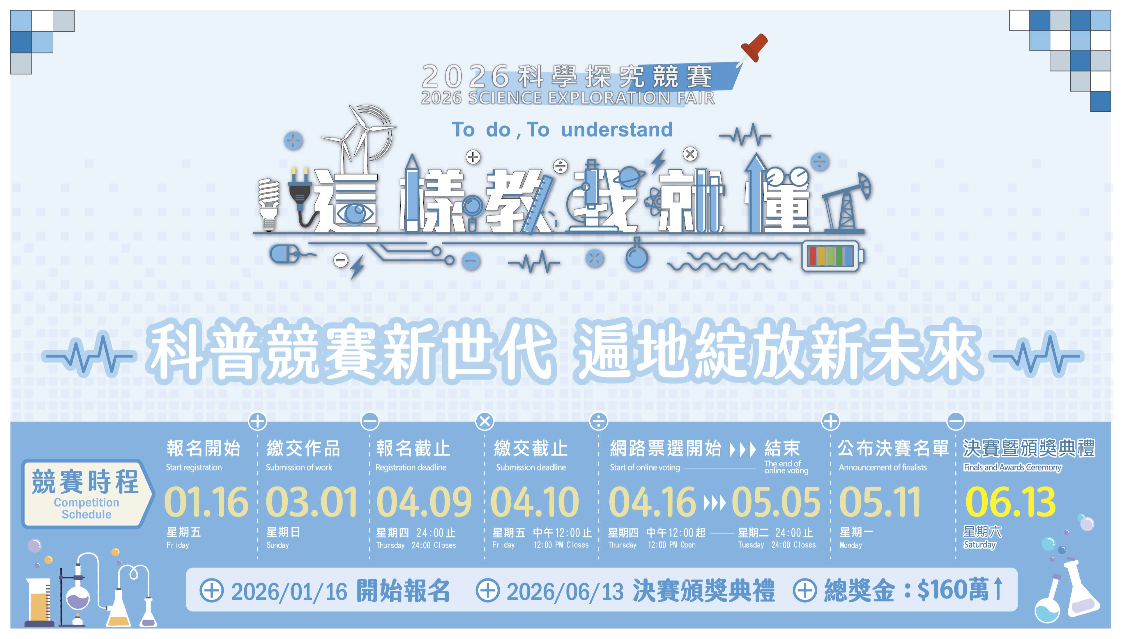 五、報名資訊、競賽方式與獎勵等相關資料請參閱附件或計畫 網站(官網:https://sciexplore2026.colife.org.tw; 粉絲專頁:https://www.facebook.com /ScitechvistaFair)。